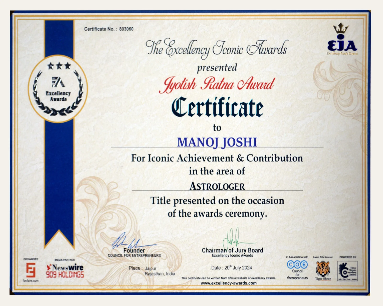 Call With Us Chat With UsLove Astrologer Manoj Joshi, I am blessed that you came into my life. Your remedies have helped me to solve every business problem. Today my business is growing with your blessings.
